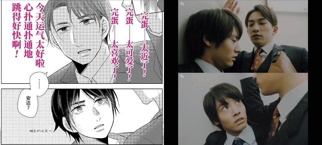 接下来发生的俗套故事大家也大概能猜到了,他无意中听到了公司“万人迷”黑泽先生的心声,发现原来对方居然一直暗恋自己!这一重大发现可不得了,不但改变了安达的人生,眼看也要改变他的性向了。