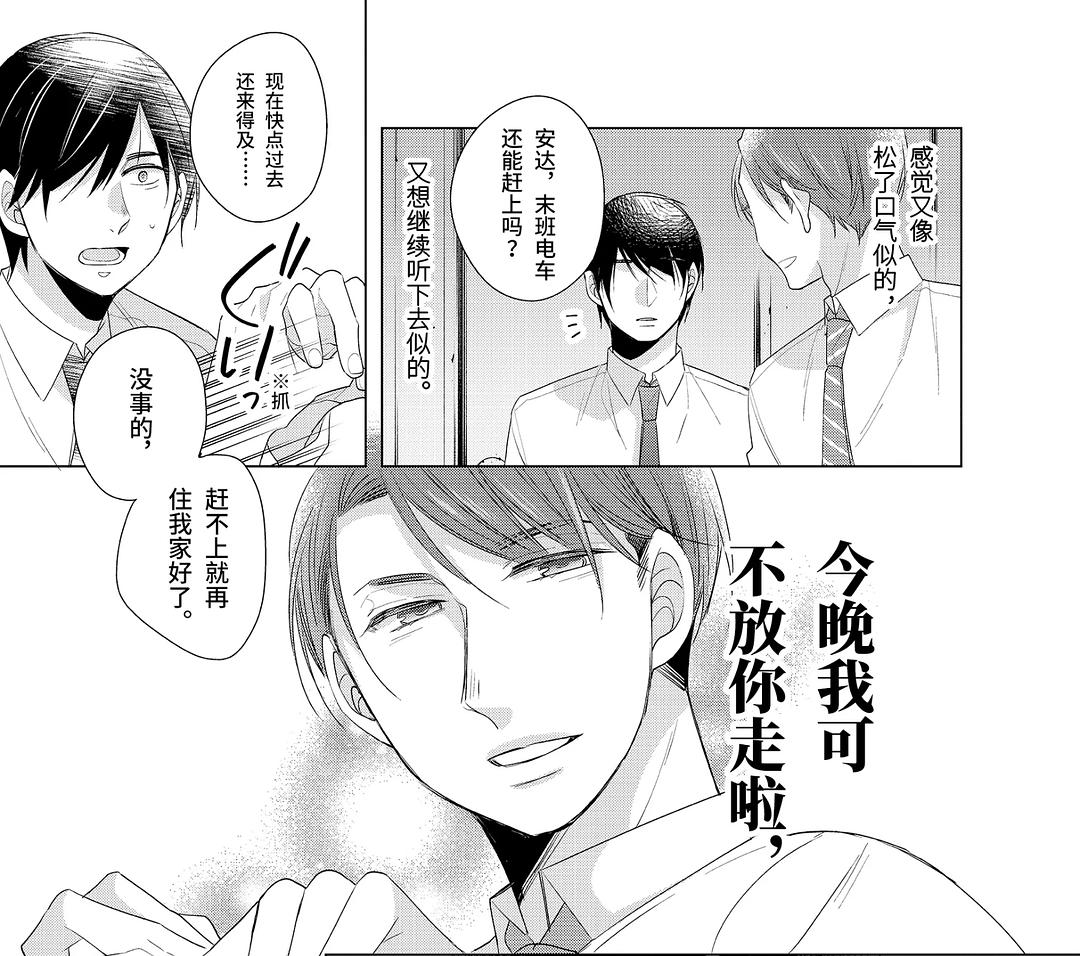 除了电梯偶遇,漫画安达还有几次试图对黑泽读心:一次是加班错过末班车,黑泽邀他去家里留宿,安达试图读取黑泽的真实目的;另一次是安达装睡,黑泽靠近他取回手机,安达尝试确定黑泽是不是想偷袭自己。