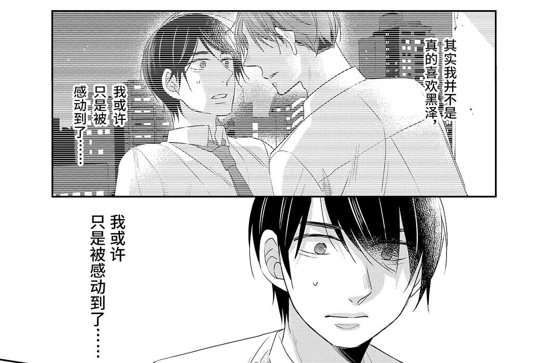 作为开了上帝视角的观众,我无法做出准确判断,只能猜想黑泽会不会多少意识到了“安达发现我喜欢他了”——作为普通同事,双方还是同性,一般来说根本不用像安达那样躲着走。黑泽也许会在心里暗自纠结:是不是最近太过积极,让他发现了蛛丝马迹,也许还是吓到了他,还是让他困扰了。直到国王游戏时安达的紧张情绪被误读为厌恶,黑泽的心理防线被彻底击穿,连营业用笑脸都很难继续维持,甚至安达第一次解释说“没有讨厌你吻我,不过因为是初吻,所以太过紧张”,黑泽也不敢让自己过分抱有希望。