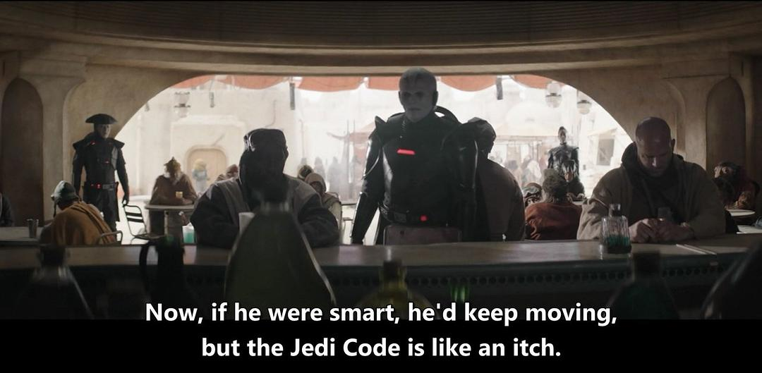 包括赏金猎人/议会大师追不上10岁短腿小女孩、众目睽睽下悠哉游哉地慢悠悠偷肉、汽车站门口拿着涉黑设备问民警我追踪咋不好使了捏等等弱智桥段就不提了,单单本片塑造的欧比旺唯唯诺诺、毫无主见的形象我就看不下去。