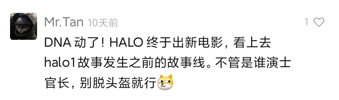 至于我最不能理解的,当然还是士官长摘下头盔了。从宣传片最刚开始爆出来时,我在下面的评论就是:怎么拍都好,只要别摘头盔。当时只是一句玩笑话,因为HALO确实有好长一段时间没有出新剧集了。我对它没有任何别的要求,不管剧情、选角、特效还是音乐,只要它是HALO,我就会支持。