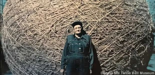 关于麻绳球文化的诞生,我们就不得不提一个人,他就是明尼苏达州达尔文小镇的农民,弗朗西斯·约翰逊。谁也不知道最开始他是怎么想的(也许只是为了打发时间),但1950年的三月份,弗朗西斯开始缠绕麻绳球,麻绳球是很容易制作的,把一段麻绳拧成一个小疙瘩,然后再绕几圈形成大致的球状即可。在这之后,我们尽可以不断在其上缠绕更多的麻绳,就像弗朗西斯一样,他花费了人生中的29年(也就是直到他去世未知)去缠绕一个巨大的麻绳球。