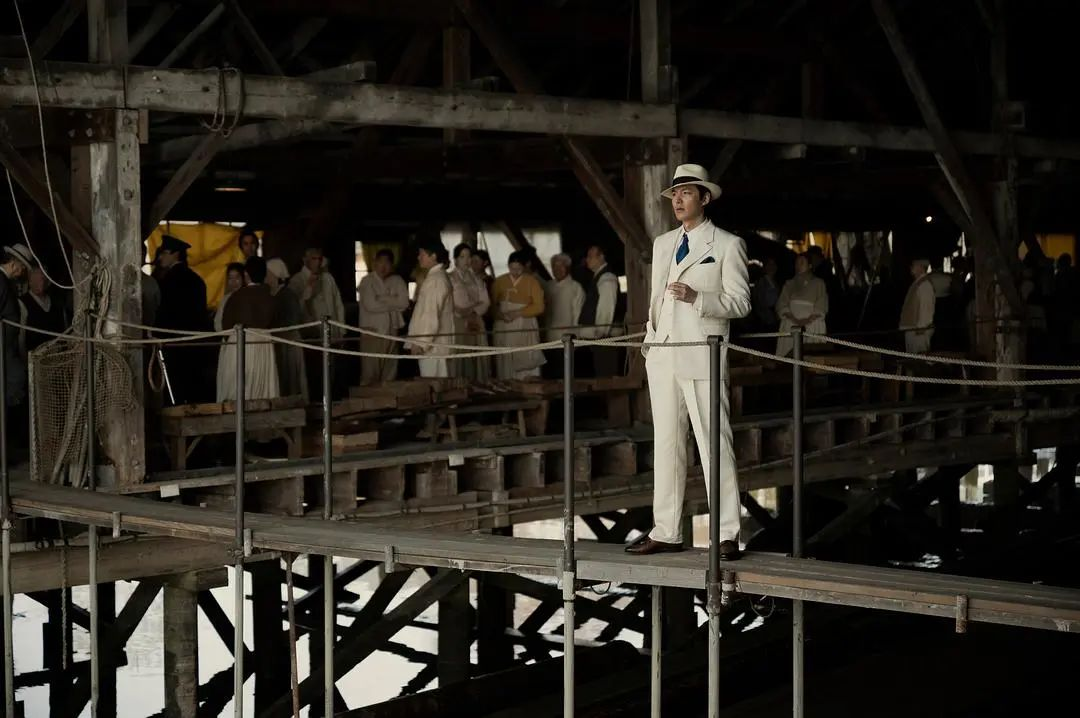 《弹子球游戏》的女性群像令人惊艳:流行的韩国影视作品中,现代女性均妆容用心、穿着时尚,古装剧的戏服和妆造也越来越精致华丽。而《弹子球游戏》则不然,善慈包裹在朴素的白色韩服里去海边买鱼,码头乱哄哄又灰突突,观众仿佛能闻到鱼的腥味儿和海风的咸味儿,而不远处凝视善慈的高汉水西装革履、一尘不染,身边的淑女穿着西式套裙踩着高跟鞋,细长的胳膊优雅地撑着伞——在短短几秒的镜头语言中,时代、阶级、财富、权力关系和与之相连的精神宰制都一目了然。衣着和器物从来不只是衣着和器物,正如在殖民时代,日本妇女远离穿着白色衣服的韩国妇女,而日本男性则视其为潜在玩物,可随意出言调戏和亵玩。