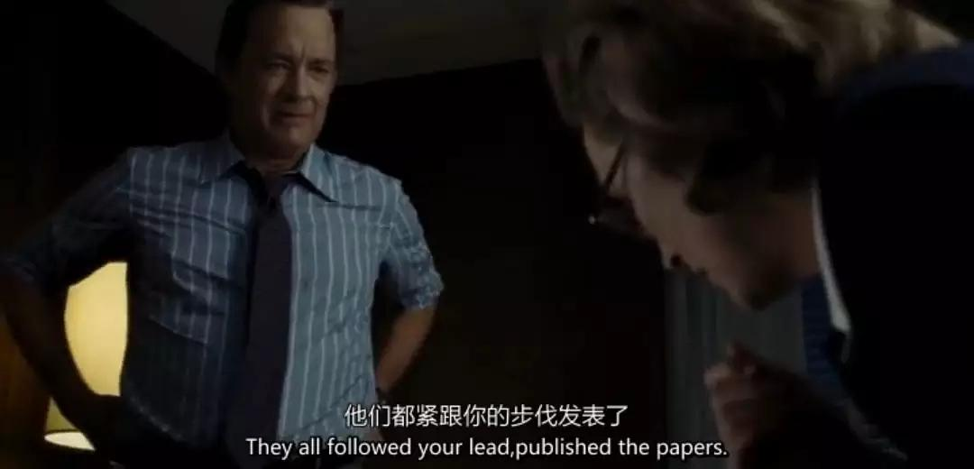 在电影中,主要就两个角色布莱德利(汤姆·汉克斯饰)和格雷厄姆(梅姨饰),我们能感受到格雷厄姆的焦虑和害怕,却没太明显感受到作为总编辑的布莱德利有何不安。