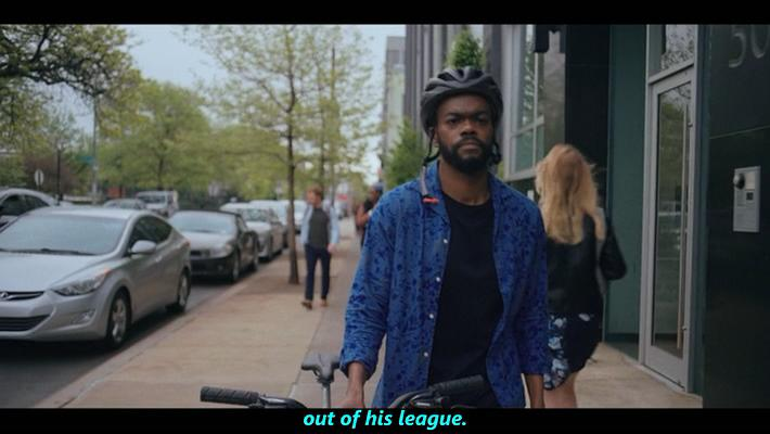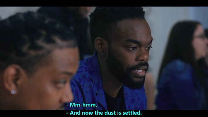 男主压力有点大,到酒吧外透透气。另外一个叫做 Mia 的黑人女人正好也来了。两个人开始攀谈起来。Mia 说自己做不到在满是白人的屋子里跳舞;因为那样会感觉自己像是一个展品。It makes me feel like. I'm on display.