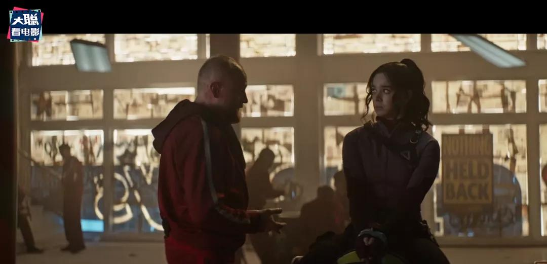 之后鹰眼和凯特在溜冰场两人对付上千个运动衣黑帮成员,是的这时候警察依然在过节没有到现场。
