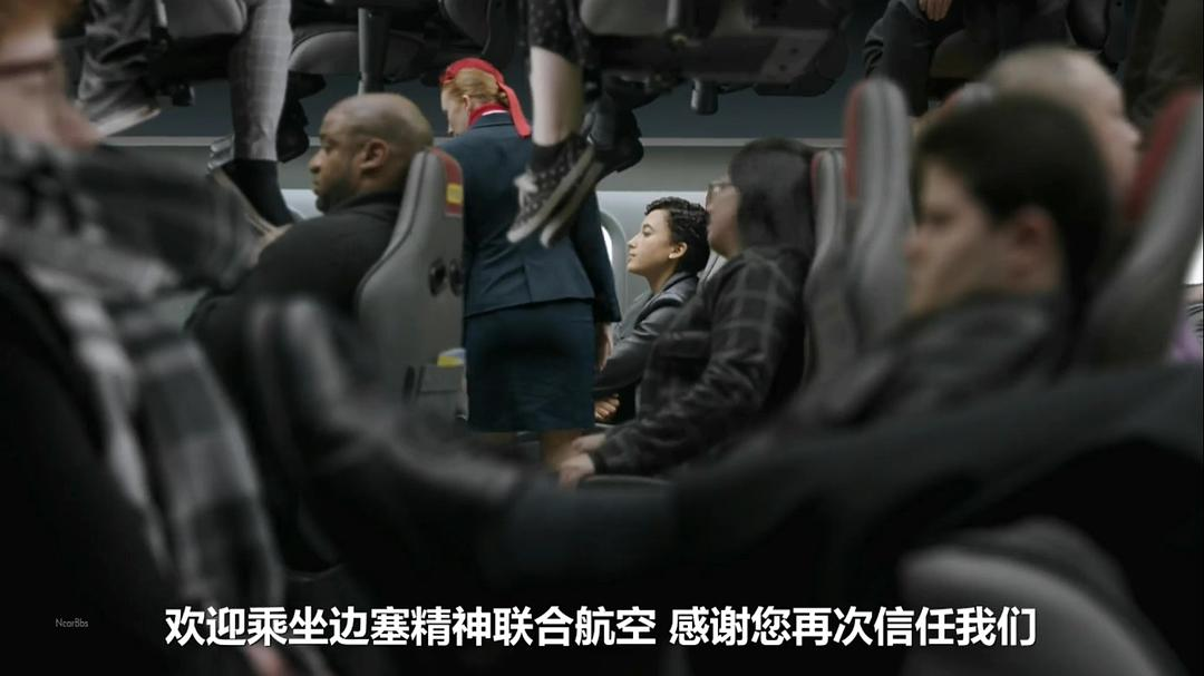 Frontier(边疆)和Spirit(精神)是美国的两家廉价航空公司,而Frontier Spirit组合在一起又有“拓荒精神”的意思。后面的United Airlines也可能在影射美联航。