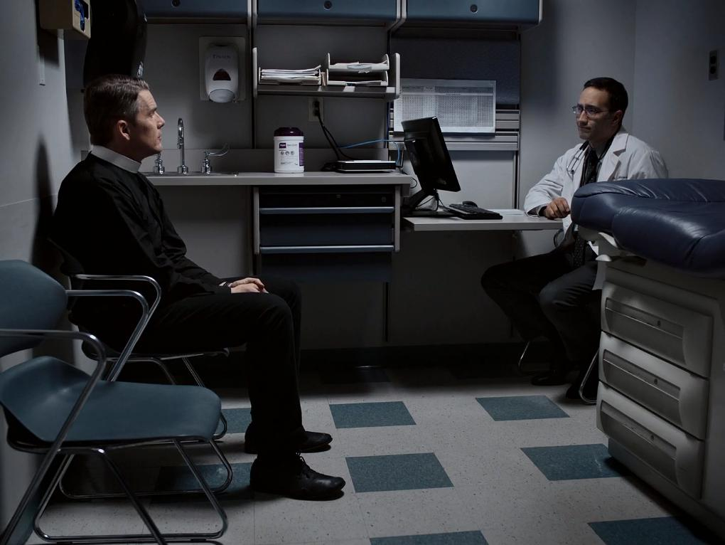 而伊桑·霍克饰演的牧师Toller,则比起之前的角色,更接近“信仰”;在影片的结尾,当Toller准备与化工品总裁Ed Balq同归于尽时,却发现了Mary的到来。