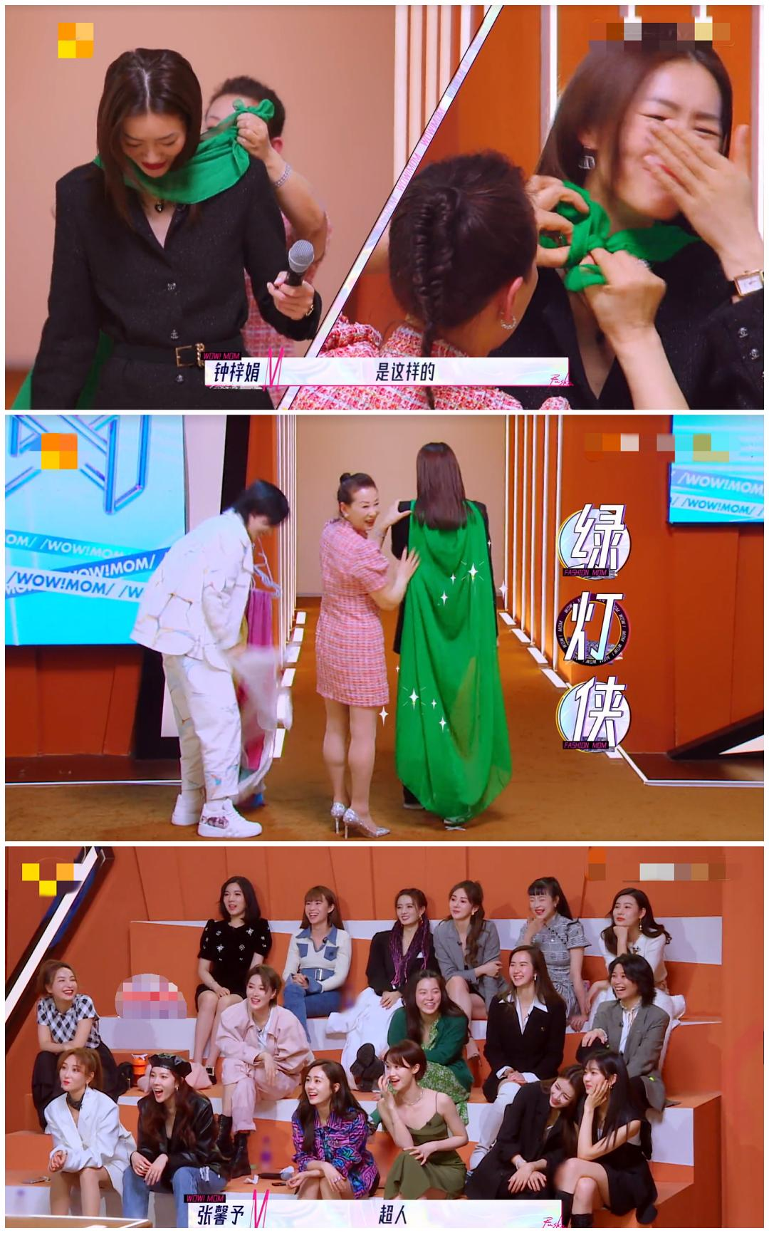 这次“娟妹儿”就大大方方邀刘雯上台给自己做model,在“大表姐”的黑色套装搭上一条翠绿丝巾作为走路带风的披风,“大表姐”秒变“绿灯侠”。