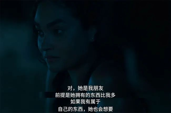 Sydney Sweeney演富家的女儿,一个很mean很难处的少女,对应的是蛇。蛇在西方文化里的象征性用不着多说了,引诱夏娃偷食禁果,一直都是罪恶的象征。但是这里你还需要了解它的另一层象征意义,在弗洛依德的精神分析学中,蛇就是男性性器官。这个少女,也处于性别焦虑,她的父亲在旅途中刚刚得知自己的父亲是GAY,死于艾滋病,这让他陷入性别迷失。而这家的女儿无比黏着这个闺蜜,还不让人家跟土著偷情,剧作是有强烈暗示她有女同倾向的,在性心理上,她很可能是个还没出柜的小T!