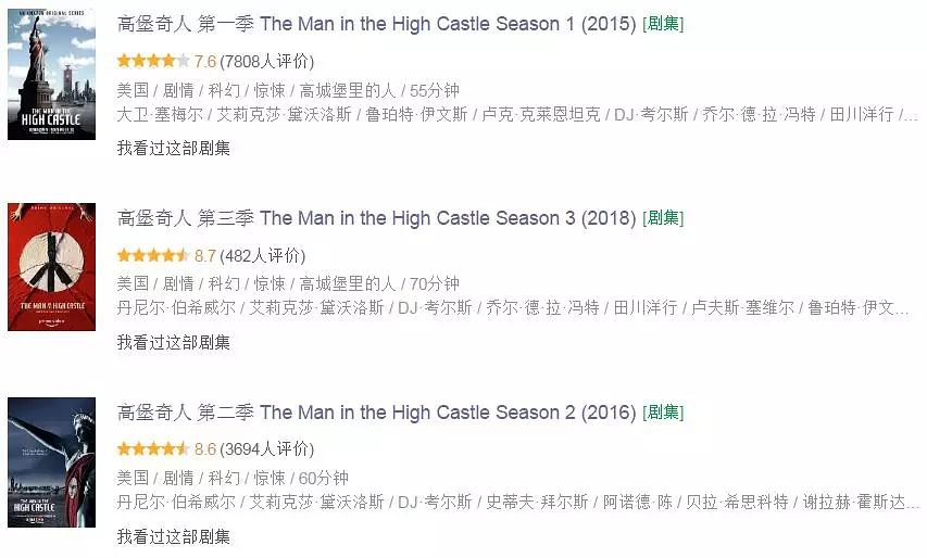 2.有一些在本季看来根本没有意义的或者很繁琐的支线和情景。各种场景的切换感觉就是强行模仿《权力的游戏》的叙事方式,甚至连权游里人物角色瞬间转移的毛病都学去了,但是显然只是学到了皮毛。权游里虽然支线众多,但是没有一个支线是多余的,每一个支线的每一个情节对于整个故事的架构都是很重要的,但是《高堡》第三季里,有的支线看完本季也觉得一头雾水,或者觉得可有可无,比如说楚蒂线,洛克威尔线,还有日本叛徒线,还有些情节看的人昏昏欲睡,比如说旧金山主角见贸易大臣前的一顿墨迹,再比如说瘦子跟杰克谈情说爱,我感觉这些情节和线路设置纯粹就是为了拖时间。它们的剧情价值根本就配不上这么长的时间。。。