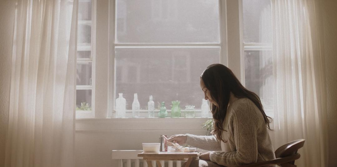 在平缓的钢琴和弦乐声中,坐在落满暖阳的桌前的Rita打开外卖的寿司盒,在闭上眼睛祈祷后,她拿起筷子笨拙地夹起一块寿司放到嘴里,并幸福地耸肩。