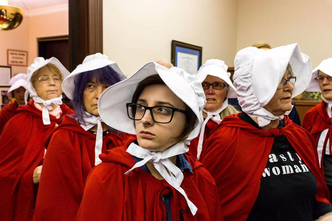 2017年,阿拉巴马州的女性身着使女服饰抗议反堕胎法