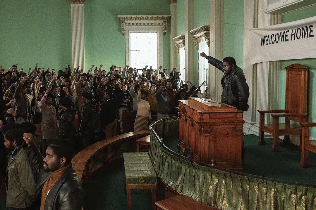 就如我开头所说的那样,电影的译名实在是够烂的,《耶稣是我同伙》???英文名直译过来是《犹大和黑人救世主》,犹大我们都知道,是耶稣十二门徒中最后为了利益将耶稣出卖的那个角色,黑人救世主显然就是指的汉普顿,我猜这个译名是直接把“弥赛亚”和耶稣等同,但是“弥赛亚”其实是对救世主的一种称谓,耶稣可以是弥赛亚,汉普顿,对于那些黑豹党人来说,正是属于他们的救世主。