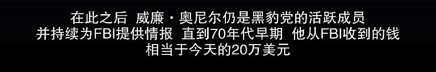 不仅要给黑豹党安插眼线,还要让黑人之间分化相互仇恨。威廉·奥尼尔先是被当做眼线,安插进黑豹党,黑豹党几近消亡后,还要把威廉·奥尼尔拿出来鞭尸,榨干最后一滴剩余价值。