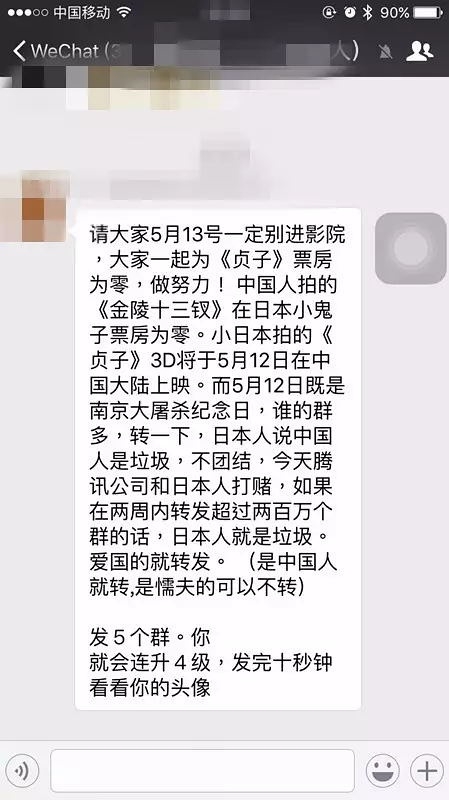 n1、有关常识nnnn首先,最好记住,南京大屠杀纪念日是12月13日。n其次,关于5月12日,希望你没有忘记八年前的汶川地震。n nn到底有没有《贞子3D》这样一部电影?n答案是有的。我找到相关资料,《贞子3D》是2012年5月12日在日本上映的一部恐怖电影。nnnn该片没有在中国上映,况且这部电影上映已经过去四年。所以中国大陆上映这一最唬人的理论完全站不住脚。n值得一提的是,《金陵十三钗》在日本的票房成绩确实为零。因为它压根儿就没在日本上映。n nn2、有关逻辑nnnn“日本人说中国人是垃圾,不团结”这样的话是怎么传到中国的?n以前还有嬉皮笑脸的汉奸说着“皇军托我给您带个话”,现在的时代可完全不同了,这里明显就是想借着民族仇恨情绪来达到传播目的。n而且“腾讯公司和日本人打赌,转发两百万日本人就是垃圾,发5个群看头像会连升4级”这样的话,如今还有人相信,个人感觉很吃惊。n n两个国家可以像小孩子过家家一样打赌吗?nn日本人是垃圾这样的话,难道一定要在中国人自己的朋友圈里面证实吗?nn微信连升4级是什么体验?有没有人能告诉我。头像会变成土豪金吗?急求!在线等!!!n nn3、有关影院nnnn其实这则消息每年的5月都会传播,人们被误导还有一个重要原因,就是近年来国内影院上映了大量惊悚、恐怖类电影。他们觉得上映个日本恐怖片也不是没有可能。n事实上,国内上映的所谓恐怖电影全部没有鬼,而国外的电影大多数是真的有鬼。这是本质区别,也是不熟悉恐怖片人群的最大误区。n n熟悉恐怖片的朋友都知道,国产片总会把那些恐怖桥段解释为主角的梦,或是他人的阴谋。最后实在解释不了就干脆不解释了,反正国产恐怖片都是投资小、回本快。nn国产恐怖片的另一大特点就是在海报上营造气氛。n比如什么碟仙,笔仙撞碟仙,最近还有个筷仙,这几部几乎把餐饮系列凑齐了,下一部不知道会不会出现个勺仙或者餐巾纸仙。n还有,烂到不能直视的《床下有人》居然都能拍三部,这特么是多大一个床啊?nn nn你应该会奇怪为什么我要挑5月12日的晚上才推送这篇文章。n因为我也是个俗人啊,我也需要让你看到5月12日大陆真的没有上映《贞子3D》来证实我的观点啊。nn以上说的都是按照常理和逻辑来证实的事,可在我国的现实情况是一切皆有可能。n很多时候都是这样,我们以为的坚固常常不堪一击,很多真相永远都没有真相。n就像前段时间雷某的忽然离去。nn———— END ————n更多文章,微信搜索关注公众号:燚见电影(ID:xiaoyizhijian)n一个创业者的电影周记n