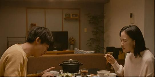 3. 男女主之间的细节也很动人。大叔去世的时候,众人去参加他的葬礼,大妈说联系不到大叔的家里人,大家都在感慨之际,旁边有一对男女,女的抱怨说下雨天还过来弄脏了新鞋真麻烦,男的也随之附和了很不耐烦之类的话,高桥小哥看了一眼,估计心里也很厌恶这种人,妻子注意到了,关心地看了他一眼,又看了一下那对男女,转头安慰高桥小哥说,大叔身边没有像那种人,也是很幸福(之类的话,字幕翻译得很奇怪,不想按字幕来)。小哥随之点点头。这也是我很羡慕日本电影的地方,当然不是说其他国家的电影就没有,可能我比较爱看文艺片所以看得很仔细,包括画面构图、颜色搭配、演员演技等,其实都在透露更多的电影信息,所以我都很热衷于对这些细节仔细推敲,经不起推敲的就算不上什么好电影了。也是很羡慕男女主之间的这种关系,彼此有默契,一方关心,另一方也能感受到其关心并做出回应,这样温和如汨汨流动的水流,这种我投一个眼神出去你就懂我在想什么的关系,真是太棒了。