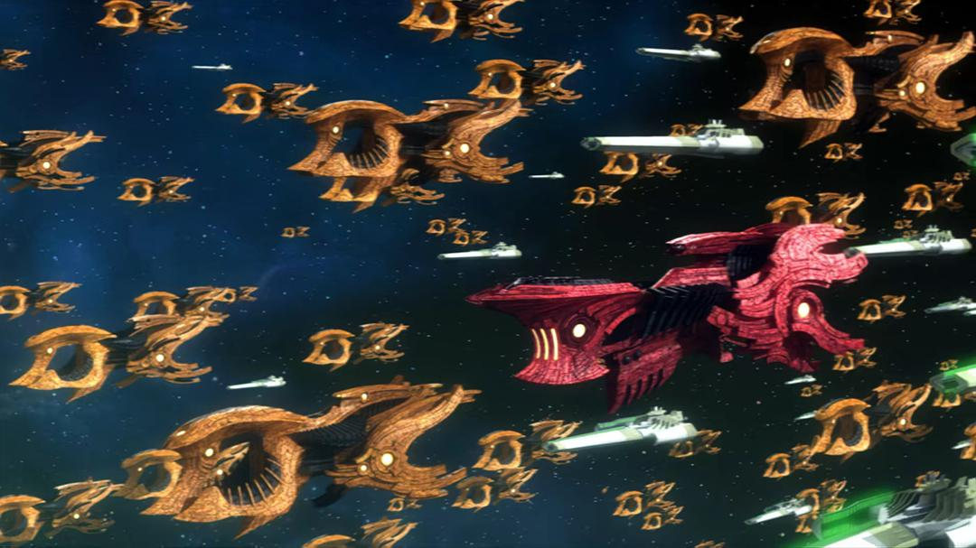 但相比于上一个剧场版注重肉搏,这个剧场版更加倾向于各种光线,爆炸和特效……(上一个剧场版的肉搏很有中国武打的感觉,打起来很畅快)由于数量众多的宇宙战舰的加入,这个片子更像是马口螺丝那样,大量战舰突入然后激光四射中间插着几个小作战单位