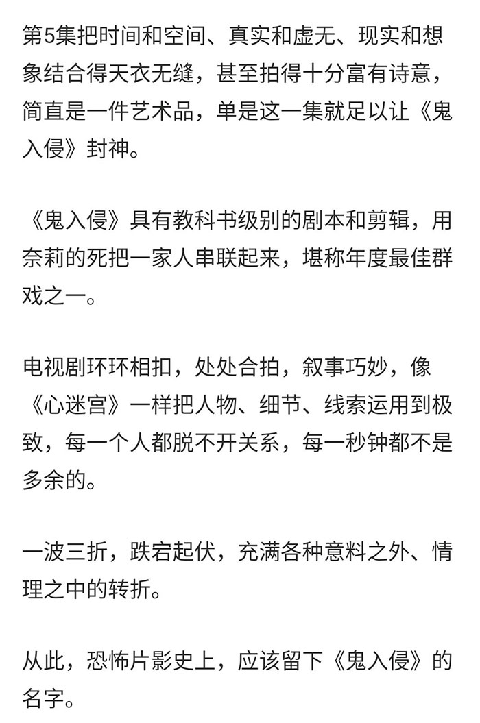 在第一遍看鬼入侵时,我非常喜欢这剧的运镜,镜头很古典恐怖式的推拉摇移。