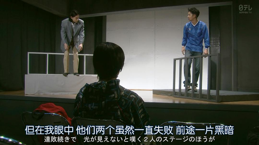 这一集的高潮发生在三人短剧舞台上的即兴时刻。在表演《屋顶》的时候,润平因为自己的愧疚对春斗道歉,而瞬太对他表达了感谢。这是一场完成在舞台上的“拯救”,春斗同时拯救了两个人。