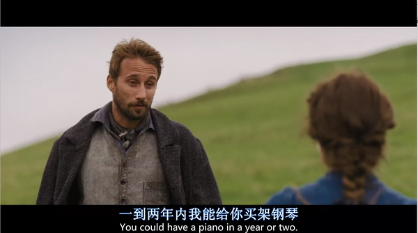 这是一部典型的名著改编电影,或许电影两个小时的时间笔墨有限,很难像哈代那样频繁地描写农场生活的细枝末节,电影中的景色很快都被一笔带过。不得不说电影的摄影真是很美,托马斯·温特伯格在英国牛津郡、多赛特、白金汉郡以及伦敦等地取景,扎扎实实地拍摄了英格兰的乡村风光。那大片的农田,金色的麦浪,陡峭的山壁,以及大气的农庄,都在电影里一览无余,这已经算是盛宴。
