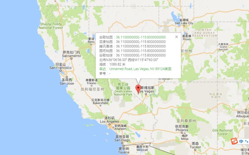 第三张图里女二写下了一个坐标,通过地图我们查到这个地方在这里,靠近拉斯维加斯: