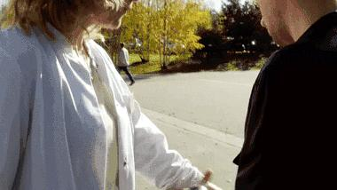 女主开走的时候,男主认出她的车。