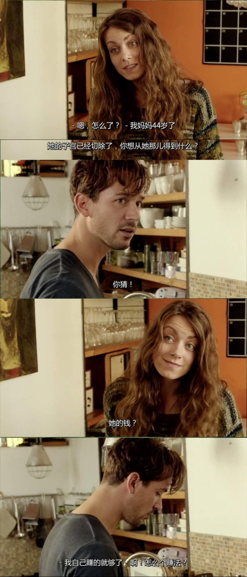 女儿看到母亲找的小情人,避免不了惊讶和生疑,她质问男主到底图她母亲什么。男主的回答也相当酷: