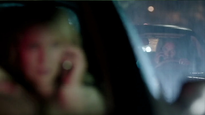 太过想念的女主找到男主的家庭住址,在大雨中驾车到达,刚想下车,结果撞到一幅美好家庭图景,就又开走了。(但其实我们从男主和女同事的对话可以看出,他们并没有住在一起,只是共同抚养着孩子)