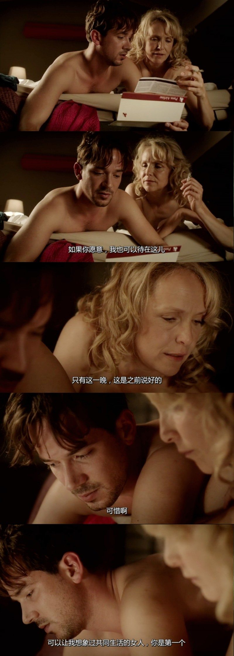女人其实是独身,女儿也已经长大,她的感情完全是私事,但包括她自己在内的所有人心里都默默涌动着禁忌,即便欧洲的文明开明又包容,即便法律与此无涉,但人心内的藩篱一直坚不可破。很多人把这种“老少配”的爱情当做某种需要挤眉弄眼对待的事情——觉得各方一定各有所图,图财,图色,近乎一种交易。女儿第一次看到和自己年纪相仿的男人在母亲房间里出没,脱口而出的就是,“你想要她的钱?”而女人的同事们则都有点嬉皮笑脸地揣度她和男人的床事。一个春心不泯,一个图谋不轨,这就是世俗人心中对这桩爱情的判决。但忽悠五年就过去,两个人像所有夫妻一样,琐碎也恩爱,按理说,所有人都被打脸,他们两人自己更该彻底接纳这份选择,但偶遇朋友,踌躇之后,女人还是会介绍,“这是我的一位好朋友”。有些障碍横亘在心里,亘古不变。