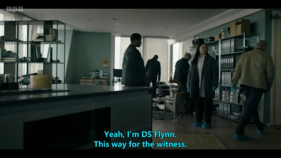 5.纳迪亚他们走进遇害者的房间,法医说姚眼部受伤,显然是站在门后被人打中的,而且子弹口径小,在中国以外很少能有这种型号。然后来了一位谭警官,自称翻译,她被带到姚的妻子的身边。然而过后谭说她不会广东话,只会几句普通话。再接着来了一位白人男子,这个人才可以翻译广东话。(此处的幽默,非常精妙,一个标准的华裔,但是不会中文,但可以自称翻译,而真正会广东话的翻译是一位标准的白人,让人不禁猜想,这英国警察队伍内部的管理也是好笑)。警察重新启动了姚屋里的监控系统。