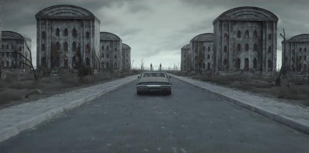 阴冷的配色,学校的建筑都宛如墓碑。墙面长满青苔。