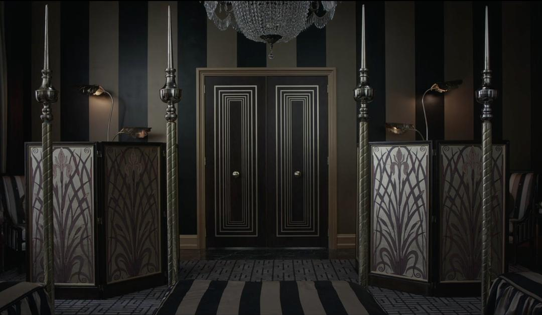 水晶吊灯、条纹的墙面和地毯、花草纹路的屏风。波德莱尔们还没来得及入住只是换了个衣服。