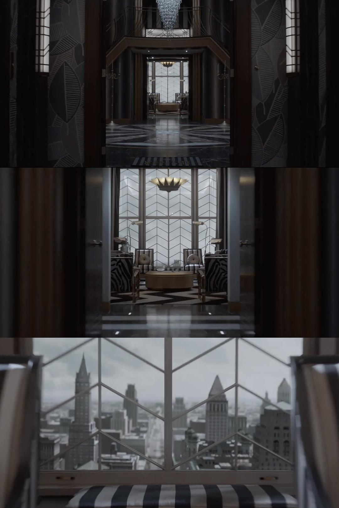Squalor夫妇家位于黑暗大道667号顶层,进去首先是一个圆形的玄关,且可以看到一个通往二层的楼梯。再往前走是会客厅,会客厅可以看到城市景色。