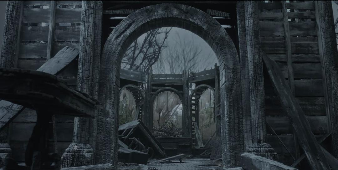 波德莱尔们通过黑暗大道667号的地道又回到了波德莱尔家,还是那一片废墟。虽然是废墟,但配色中透着生机(绿+红)。