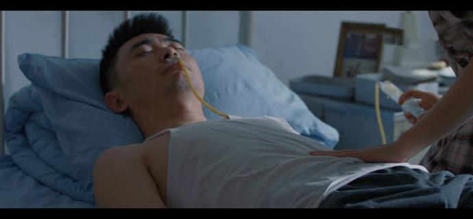 镜头来到一个码头,画面突然出现一个年轻的短发女孩,蹬着一辆三轮车,穿着像是在海边贩卖海鲜的摊贩,她微笑着跟别人点头示意打招呼,然后在一个卖螃蟹的摊子上买了些螃蟹。回来后,她用力的洗刷着手上因接触海鲜而被沾染的污泥与腥味,把自己洗得干干净净以后来到病床前,床上躺着一个男人,应该是她的丈夫,她一边熟练地将鱼汤撇进碗里,拿出针管吸入鱼汤,然后通过乳胶管注入到丈夫体内,一边跟丈夫诉说着最近的生活,她说这两天鱼市刚开海,所以她早晚会比较忙,晚上她会去给公婆送一些海鲜,而此时的丈夫依然昏迷不醒,没有任何反应,女孩也并不期待丈夫有什么回应,只是抚摸着丈夫的胸口,帮他将刚刚注射进体内的鱼汤顺进胃中。