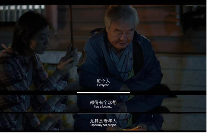 全篇除了两人的饰演,还有一个角色令人过目不忘,那就是饰演老梁的演员老师。虽然老梁只出来前面的一小段部分,但作为郑先生的老友,在自己生日之际,在陪伴老友一同钓鱼,在最后的日子,希望和自己最要好的老友共同住进养老院,一辈子算是值了。
