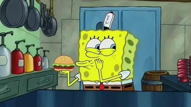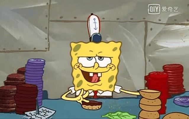 海绵宝宝做汉堡,几百集了,做菜顺序一点儿没变过。