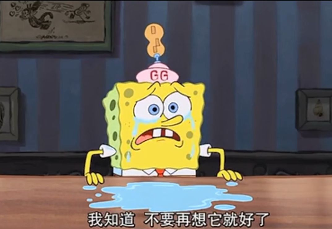 海绵宝宝的升职机会被章鱼哥抢走,他一个人坐在家里哭,边哭边安慰自己: