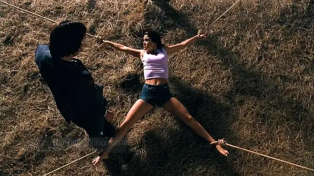 除此之外影片的亮点之一就是杀人手法,虽然感觉镇民们杀人时的雀跃有点浮于表面,小镇上欢快又残忍的气氛塑造得也不是很好,但有几个杀人场面还挺可圈可点的。比如用钟砸死人啦、引诱游客喝硫酸腐蚀自己啦、用磨石压胸口啦、四马分尸啦之类的,还算创新。其他比较常规的穿刺(从菊花到喉咙)、直接用牙齿啃和最后的鱼线(?)杀,表现得都还不错,如果杀人气氛再热烈疯狂一点就好了。至于特效,05年的电影就不过多要求了。
