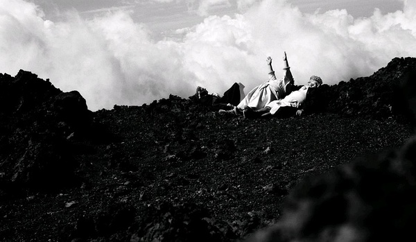 然而在这部《El Cant dels ocells》中,历史或神话似乎回到了它们诞生之前,即它们以历史或者神话的形态君临这个世界之前。那个时代是人的时代。人作为自己的图腾而战战兢兢的行走在大地上,在似乎没有任何神的庇护的情况下,开始一种追寻即造神的过程(你据此也可以说这是一部关于神话诞生的纪录片)。这不再是一种返回的时态,而是发生在一切可返回之前的一种时态,却也不是一种虚拟时,而是一种进行时,虽然在跳跃性的发生,却似乎一直处于无始无终的进展中。在这里需要强调自然空间的呈现,大海,沙丘,山峦,灌木以及隐秘的洞穴与它们的声音,它使得简单的步行时态——缓慢的,忧郁的——具有一种永恒的气氛,时而瑰丽,时而温和。三王横渡的沙漠,抑或他们歇息的胖身体下的矮灌木,抑或游泳时的海,都使得在与自然的伟大交流中的人开始呈现出与众不同的气质。他们不再是静态的,亦不是急行军,而是可以在缓慢的位移中达到某种境遇,这正区别于当下电影中对待空间的态度:以快速的经历某个(多个)空间来证明自己的强势。这种方式无疑契合了西部片以及一些公路电影中对于空间的利用(我认为这部就可以叫做走路电影,是走路电影的“easy walker”),但不同的是这里的空间是严格非戏剧性的,每一处自然的片段都是其本身,而不是任何戏剧性的动因。
