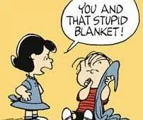 查理·布朗最好的伙伴莱纳斯,头发比查理多了几根,只有毛毯能给他带来安全感;