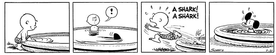 模仿鲨鱼的形象最初是出自1954年7月21日的《花生漫画》,在原作中史努比是以右耳模仿鲨鱼的背鳍,而动画中则是以左耳来模仿的。而实际上,这既是史努比在《花生》中所模仿的第一个动物形象,同时也是它角色扮演中的首个模仿形象。