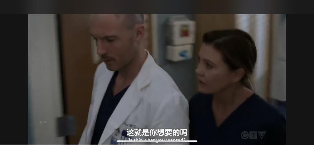 这是一段长达4分半钟(8:08~12:49)的剧情,其中Meredith Grey的部分涉及四段内容,出现在S15E14,下面是S15E14截图: