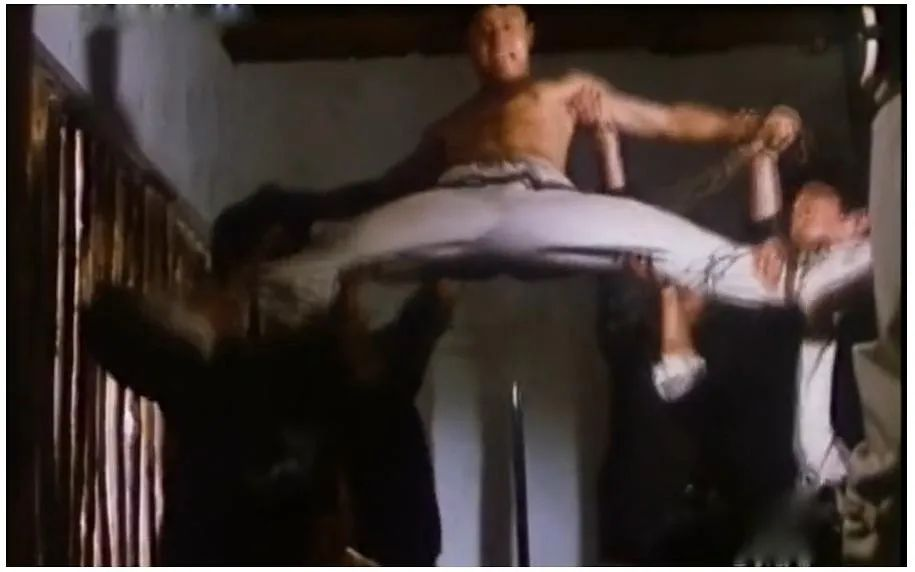 傅天豪死得相对惨烈一些:马腾云先命手下搬来一条钉着大铁钉的木凳,然后让四个人将傅天豪架起来,硬让他坐在那根一尺长的铁钉上(叫铁棍似乎更合适),让铁棍从肛门直插入他的腹内……然后给他换上一身干净裤子,做出畏罪自杀的现场,傅天豪人虽惨死,但基本看不到皮外伤。记得当时看到傅天豪面目痛苦、铁棍上血流如柱的镜头,真是太惨了,现在想想都瘆得慌,那感觉就和后来看攀少皇的《力王》差不多。