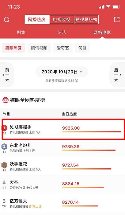 该片上线于10月18日上线,上线第三天,网播热度就冲到第一,势头很猛。