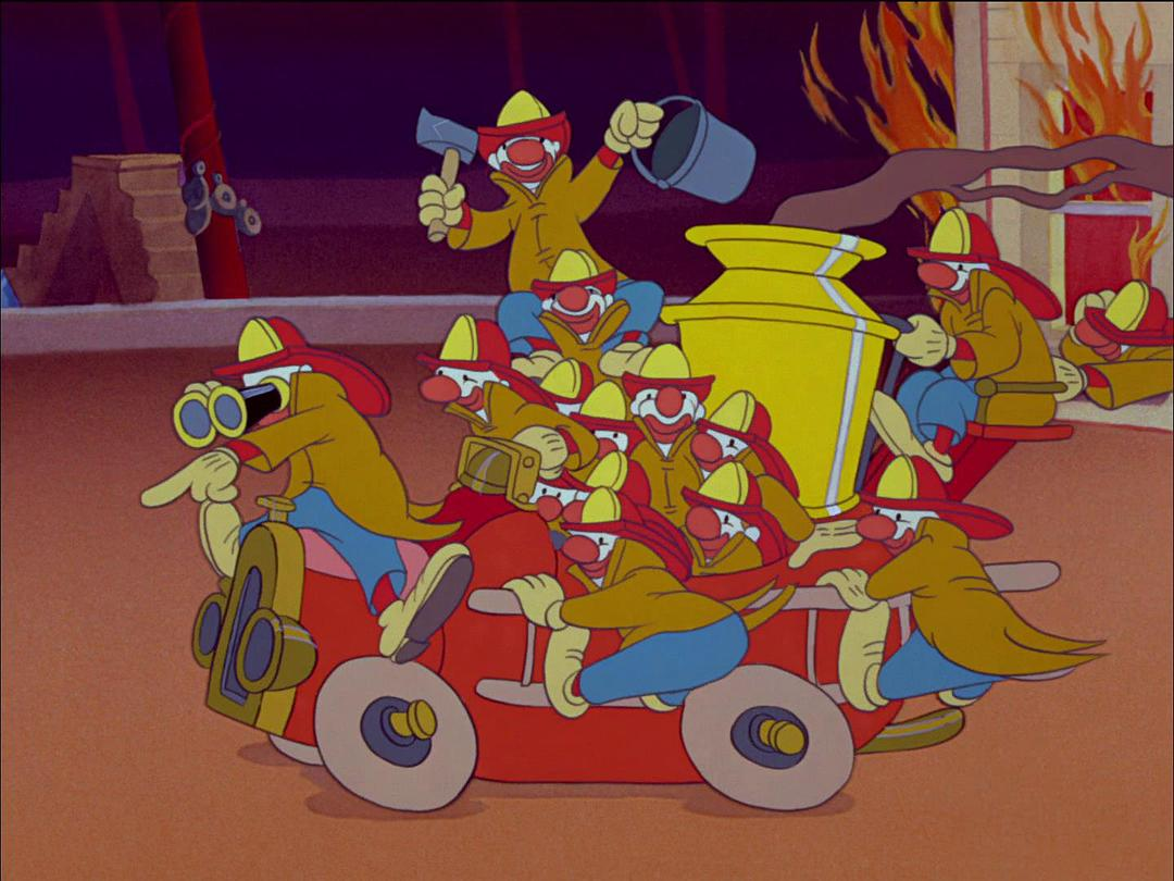 电影中的消防员小丑滑稽戏出自动画版,动画版中消防员小丑们对待小飞象的态度和真人版中完全相反,也就是非常刻薄