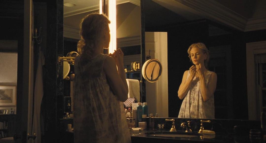 而相比之下妮可基德曼饰演的母亲则更加精于算计,在影片的前半部分她始终保持着一种诡异而异样的笑容,在皮笑肉不笑的表情之下,观众完全有理由相信她从未被医生的谎言欺骗过,只是始终心照不宣。甚至可以说母亲的角色其实才是影片前半部分最为惊悚的元素之一。甚至在获知丈夫与男孩早已交往将近半年时也没有一丝惊讶,反倒只有一种“情理之中”的复杂表情。