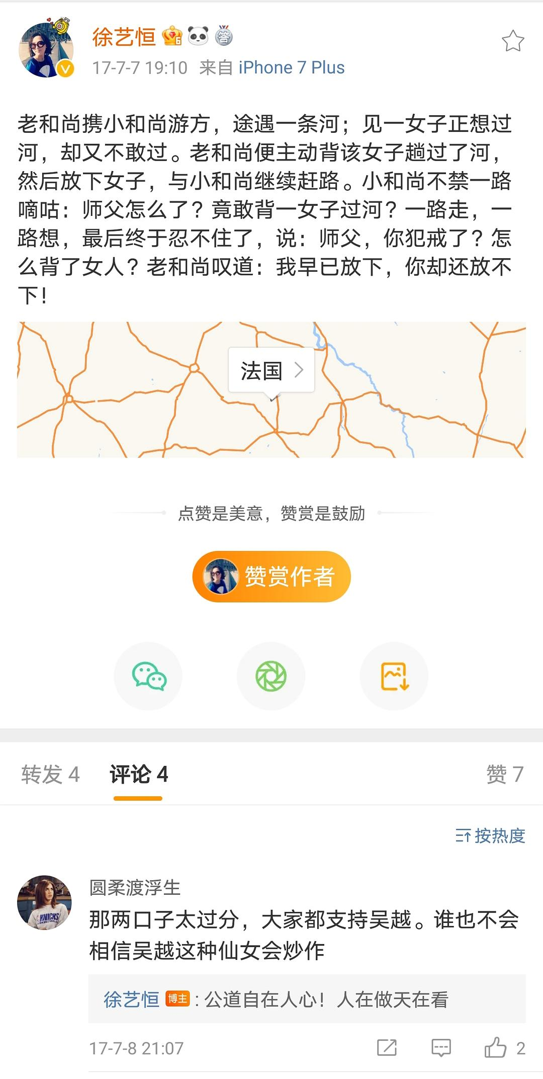 即使是一个素昧平生的导演,也不忍心在那么糟糕的时刻为难她。然而一个曾经相爱,曾经得到她帮助,曾经伤害过她的人,用一封冷冰冰的律师信把那些伤口残忍划开,暴露人前,尽管深入一点就知道那封律师信和那个官司不过是个笑话。她的经纪人在微博里讲了一个小和尚、老和尚背美女过河的故事,故事的最后,老和尚感慨,我都放下了,你怎么还放不下。