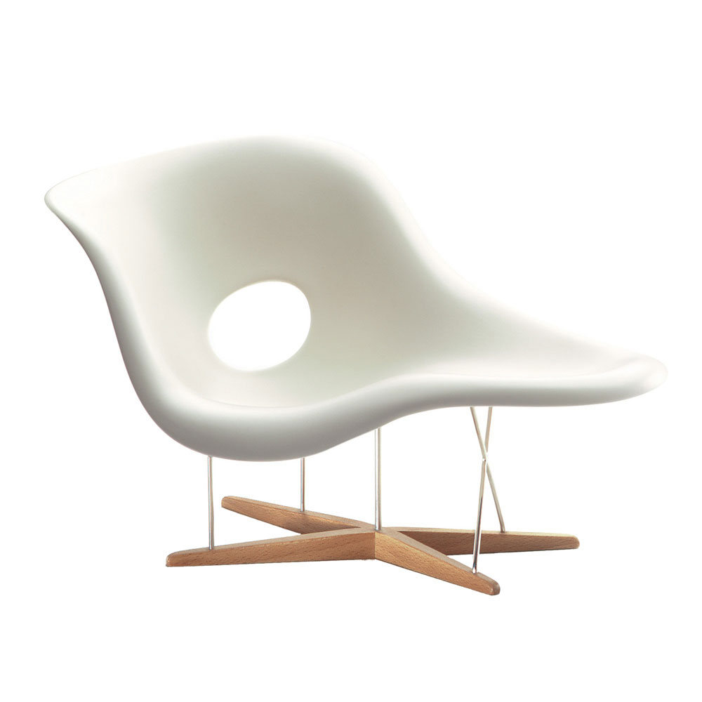 最初伊姆斯和太太雷为现代艺术博物馆 1948 年的“国际低成本家具设计竞赛”设计了这款躺椅。 灵感来源于 Gaston Lachaise 的 Floating Figure 雕塑,在设计师的想象中,雕塑中的美人儿就坐在这样的美人榻上,椅子也因此拥有了优雅的曲线设计。La Chaise 除了是雕塑家的名字,也是法文「椅子」的意思。